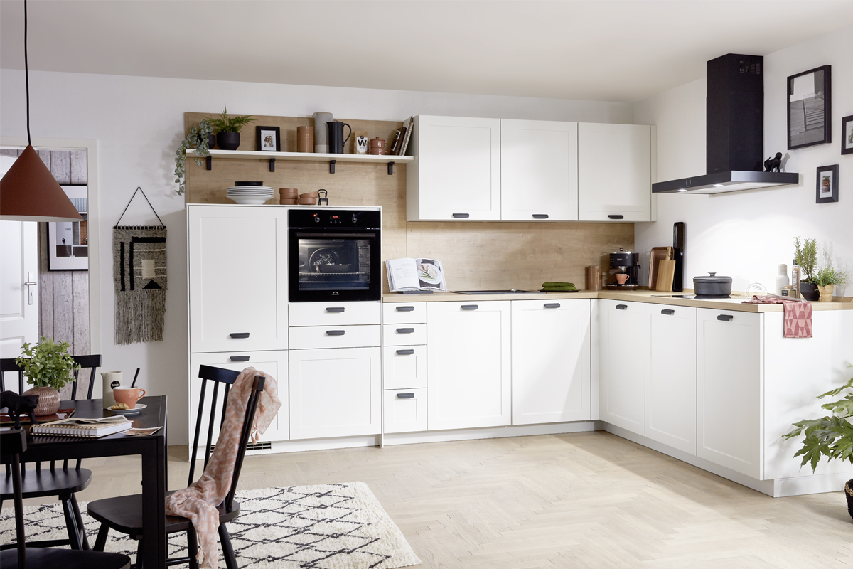 Inklusive Einbaubackofen Edelstahl Laurus LEB5 Energieeffizienzklasse A, Glaskeramik Kochfeld Laurus LCA600, Dunstesse Edelstahl Airforce F100-90 Energieeffizienzklasse B, Kühlschrank Laurus LKG88E Energieeffizienzklasse E, Einbauspüle Edelstahl Rodi Okio Line 85 Deep, Unterschränken mit Frontauszügen, Wandschrank mit Glassprossentüren. Inklusive Lieferung.